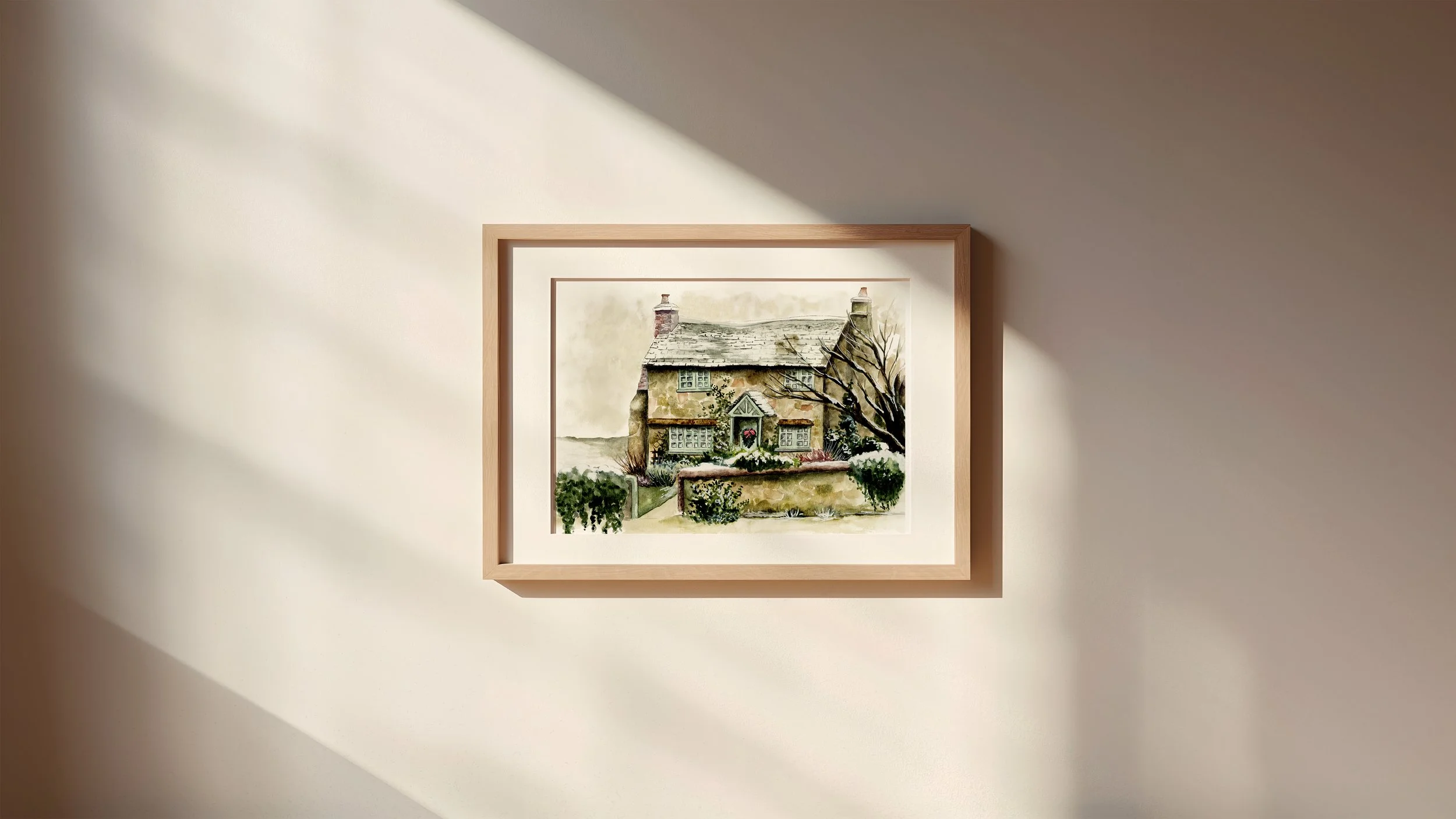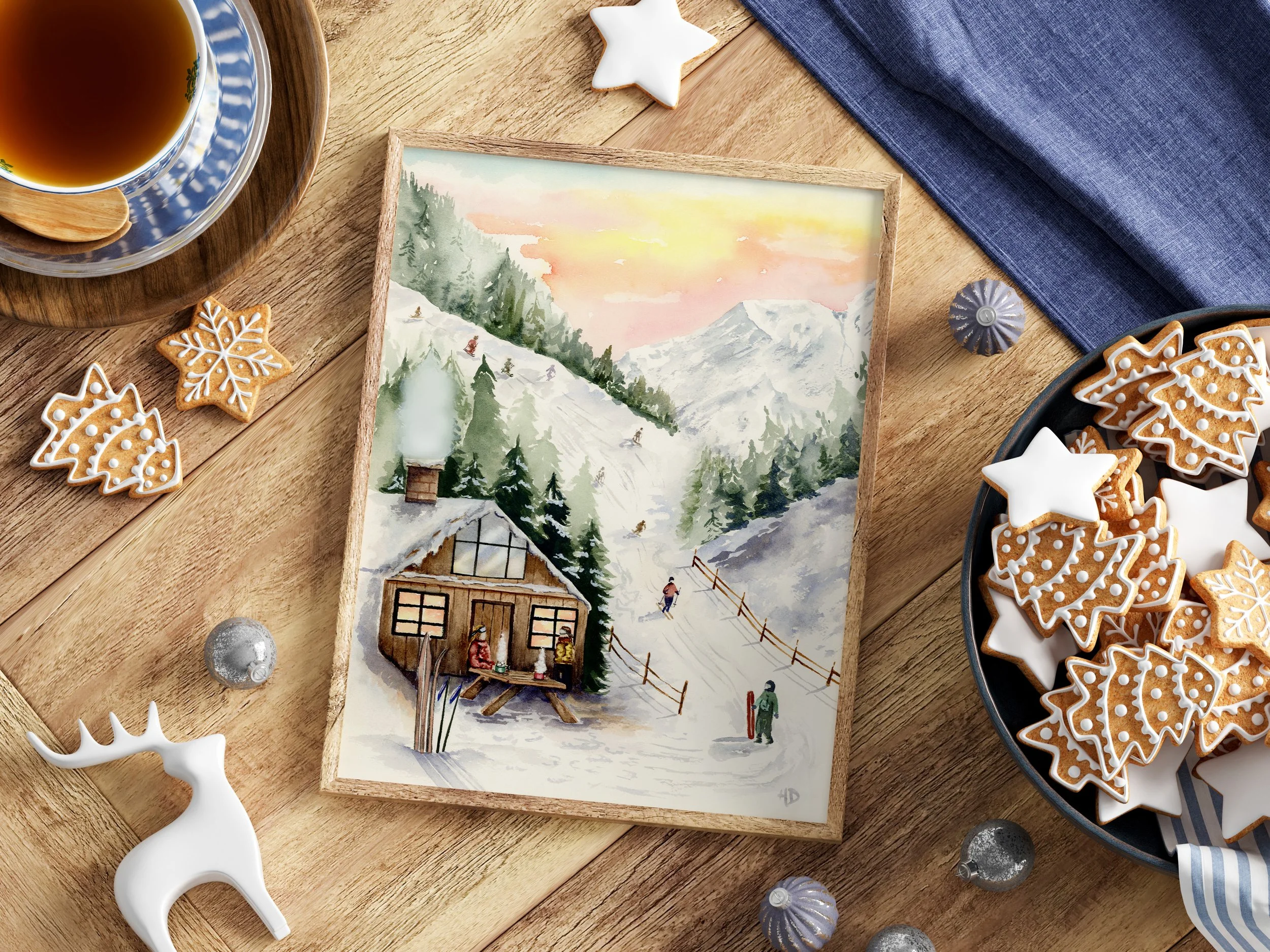 Winter Art Categories: All Pottery Winter Art Art Prints Floral Art Prints All / Alpine Ski Hill English Cottage Old Montreal Winter Watercolour Print Pine Forest Gingerbread Wreath Tree Lights- Watercolour painting Cozy Cottage Watercolour Print